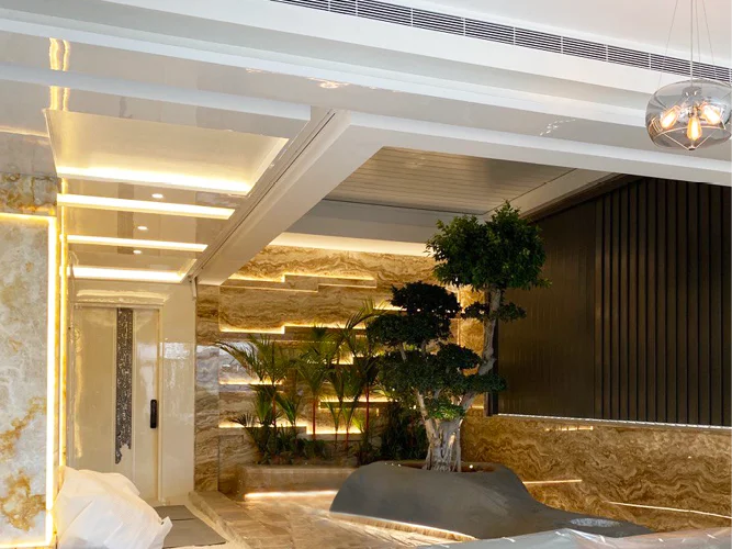The 3-level luxury residence demonstrates a unique aesthetic influence largely by the interests & personalities of the residents themselves. A range of natural & processed materials coalesce to define a varied yet cohesive character within the Bhaskar Residence.