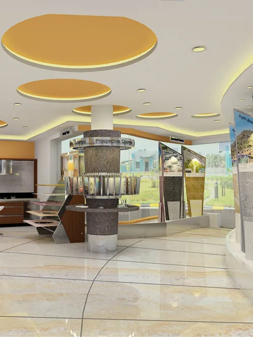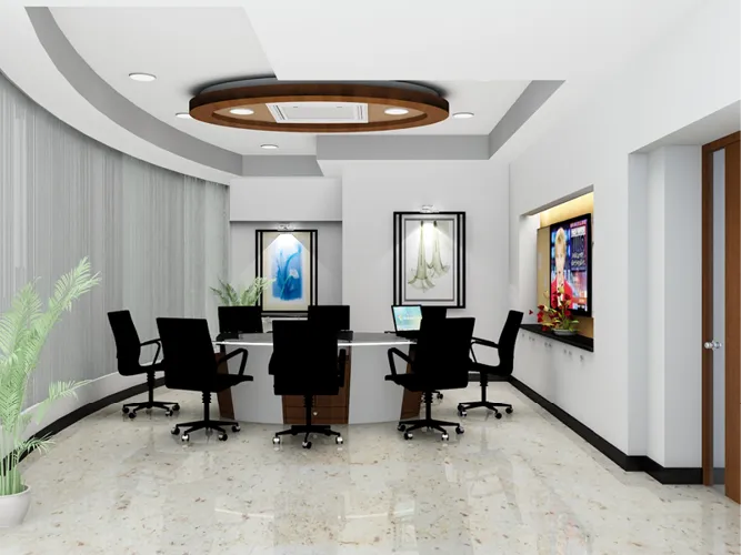 This project was an attempt to enhance the Existing interiors of the Admin Building located within the Granite Processing unit owned by Madhucon Granites Ltd. This elaborate circular 3-leveled building consists of various spaces organized radially. The new areas of this structure were made to incorporate features that were contemporary at the time while also coordinating with the original finishes. Contrasting pastel colors, wall coverings & thematic wall hangings were used to adorn the walls. The Chairman's & MD's Cabin have been distinguished from the rest with the use of materials that create a subtle yet elegant ambience.