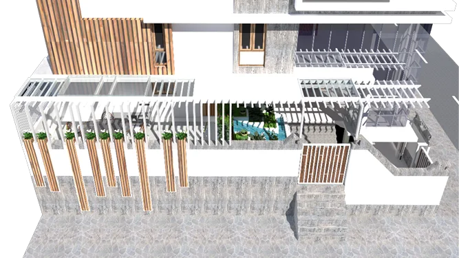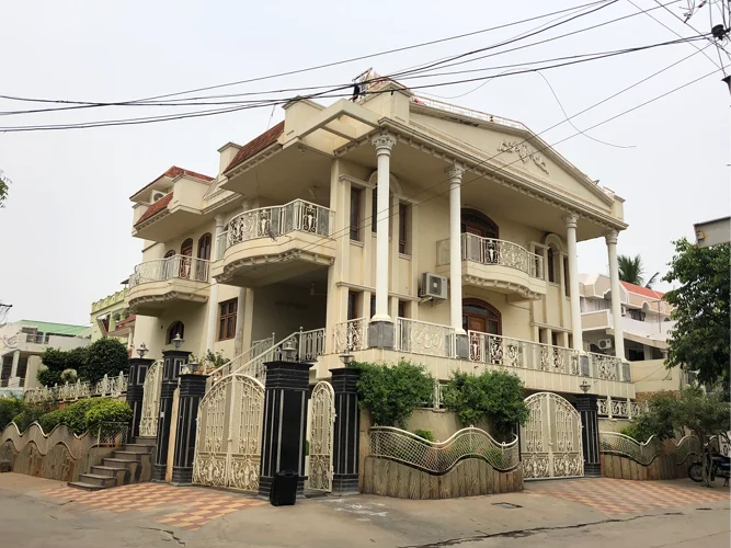 The Hanumantha Rao Residence, an ornate ancestral house, was to be substantially renovated to meet the family’s changing requirements & add aesthetic value. Being a corner plot, the house becomes a prominent location with high visibility. Many openings strategically planned on the North-East facade allow substantial light to enter this 3-storeyed residence. The original structure has been retained by strengthening the structural members. The internal courtyard provides for visual continuity between the 2 levels of the house. This contemporary renovation project uses a subtle combination of grey traventine, HPL cladding & metal members for the entrance canopy.