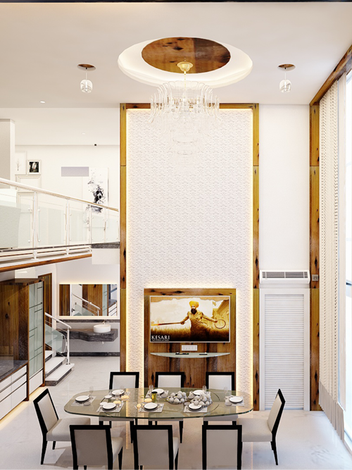 This luxury duplex interior displays a sense of richness through its carefully chosen palette of materials & textures. Having a balance between a modern & a traditional outlook, the various elements come together to make the space feel comfortable despite its defined styling.